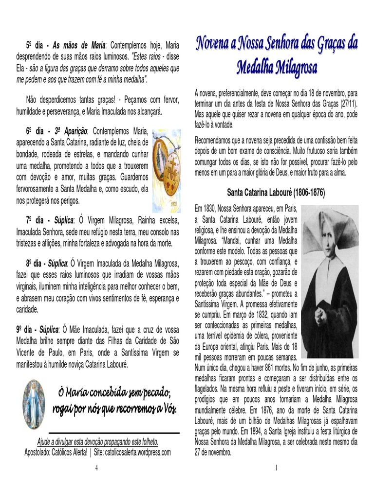 Novena De Nossa Senhora Das Graças Da Medalha Milagrosa, 1º dia - Novena de Nossa Senhora das Graças, 9.48 MB, 06:54, 326,068, Padre Alex Nogueira, 2021-11-18T01:30:10.000000Z, 5, Novena Perpétua da Medalha Milagrosa de Nossa Senhora das Graças, br.pinterest.com, 540 x 820, jpeg, WebNovena de Nossa Senhora da Medalha Milagrosa. 1 – Sinal da Cruz. 2 – Ato de Contrição. 3 – Leitura do dia. (ver abaixo) 4 – Três Ave-marias, seguidas cada uma da invocação:. WebNovena da Medalha Milagrosa 18/11 à 27/11 - Rainha dos Céus A Medalha Milagrosa de Nossa Senhora das Graças Em 27 de novembro de 1830, a Virgem., 20, novena-de-nossa-senhora-das-gracas-da-medalha-milagrosa, Ciência popular e notícias WebNovena de Nossa Senhora da Medalha Milagrosa. 1 – Sinal da Cruz. 2 – Ato de Contrição. 3 – Leitura do dia. (ver abaixo) 4 – Três Ave-marias, seguidas cada uma da invocação:. WebNovena da Medalha Milagrosa 18/11 à 27/11 - Rainha dos Céus A Medalha Milagrosa de Nossa Senhora das Graças Em 27 de novembro de 1830, a Virgem.